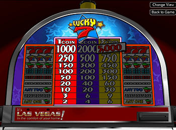 Играть в эмулятор знакомыми символами, собирая призовые комбинации, достаточно легко. Кроме счастливых красных семерок, игровой автомат имеет иконки с изображением вишенок, логотипа игры, разноуровневые надписи «Bar». Сочетание одинаковых изображений принесут долгожданный выигрыш, а оповестит геймеров об этом подсвечивающаяся строка в верхней части дисплея в таблице выплат. Естественно, что самым ценным значением является семерка. Выпадая на активной линии, она пополняет счет игрока на 1000 монет. За сочетание трех заветных цифр слот-машина увеличит счет на 5000 монет.